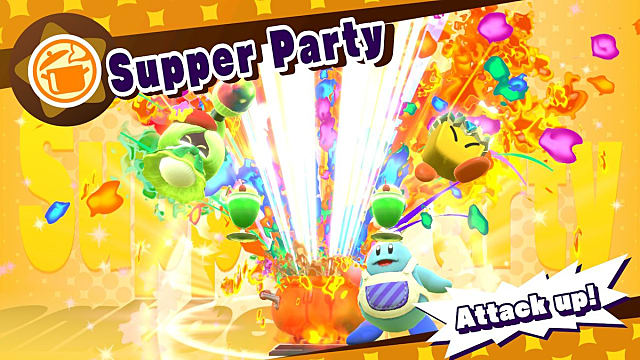 The other major addition is the ability to combine and enhance certain copy abilities through the power of teamwork. Certain copy abilities have elemental properties like fire and ice which can be applied to many other copy abilities in order to raise their strength, defeat special enemies, and solve various puzzles. There are also a few special moves to be found by mixing and matching different abilities, and while there aren't too many super crazy combos to be found, there is some incentive to experiment with what you've got.